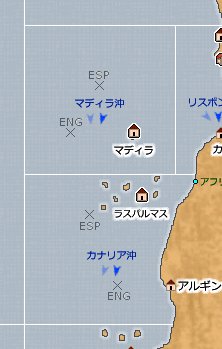 | マディラ沖 | マディラの真西 | 15260,3440 | 15264,3466 |