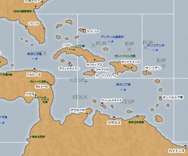 | カラカス | ヴェネツィア領地 | 防衛 | 防衛 | ポルトベロ | イスパニア同盟港 | 防衛 | 防衛 | |||