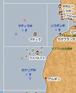 | マディラ沖 | マディラの真西 | 15260,3440 | 15264,3466 |
