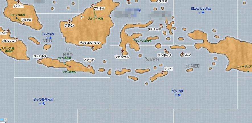 | スラバヤ | ヴェネツィア同盟港 | アンボイナ | ネーデルラント同盟港 | |||||||